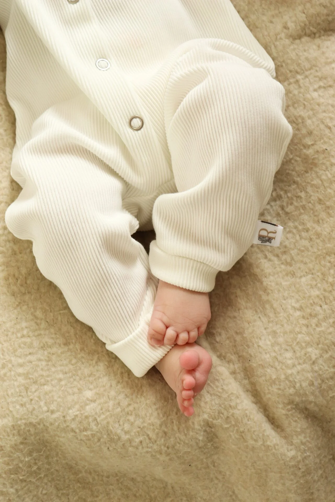 Maak de onderste knoopjes los en haal alleen de beentjes uit het pakje, verschoon je kindje zoals je gewend bent en trek het broekje weer over de beentjes en je kunt hem door middel van de drukknoopjes weer goed sluiten.