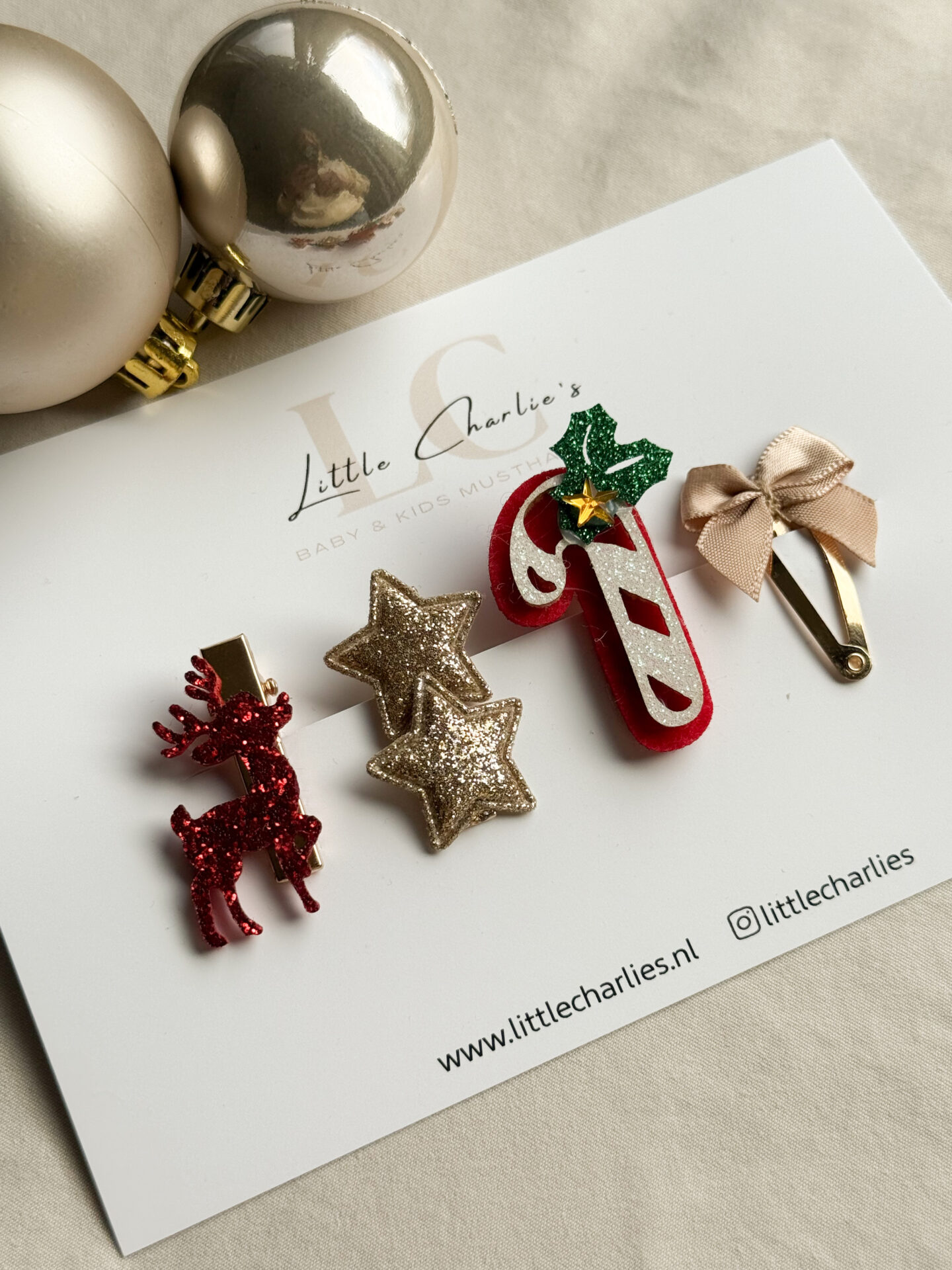De handgemaakte knipjes van Little Charlie’s brengen een vleugje magie in het leven van je kleine meid. Met hoogwaardige alligator speldjes, gebruiksvriendelijke klikklak knipjes, diverse ontwerpen en speciale kerstcollecties zijn deze knipjes een fantastische toevoeging aan elke garderobe. Of je nu op zoek bent naar een mooi kerstcadeau of gewoon iets speciaals om het haar van je dochtertje mee te versieren, onze knipjes zijn de perfecte keuze.